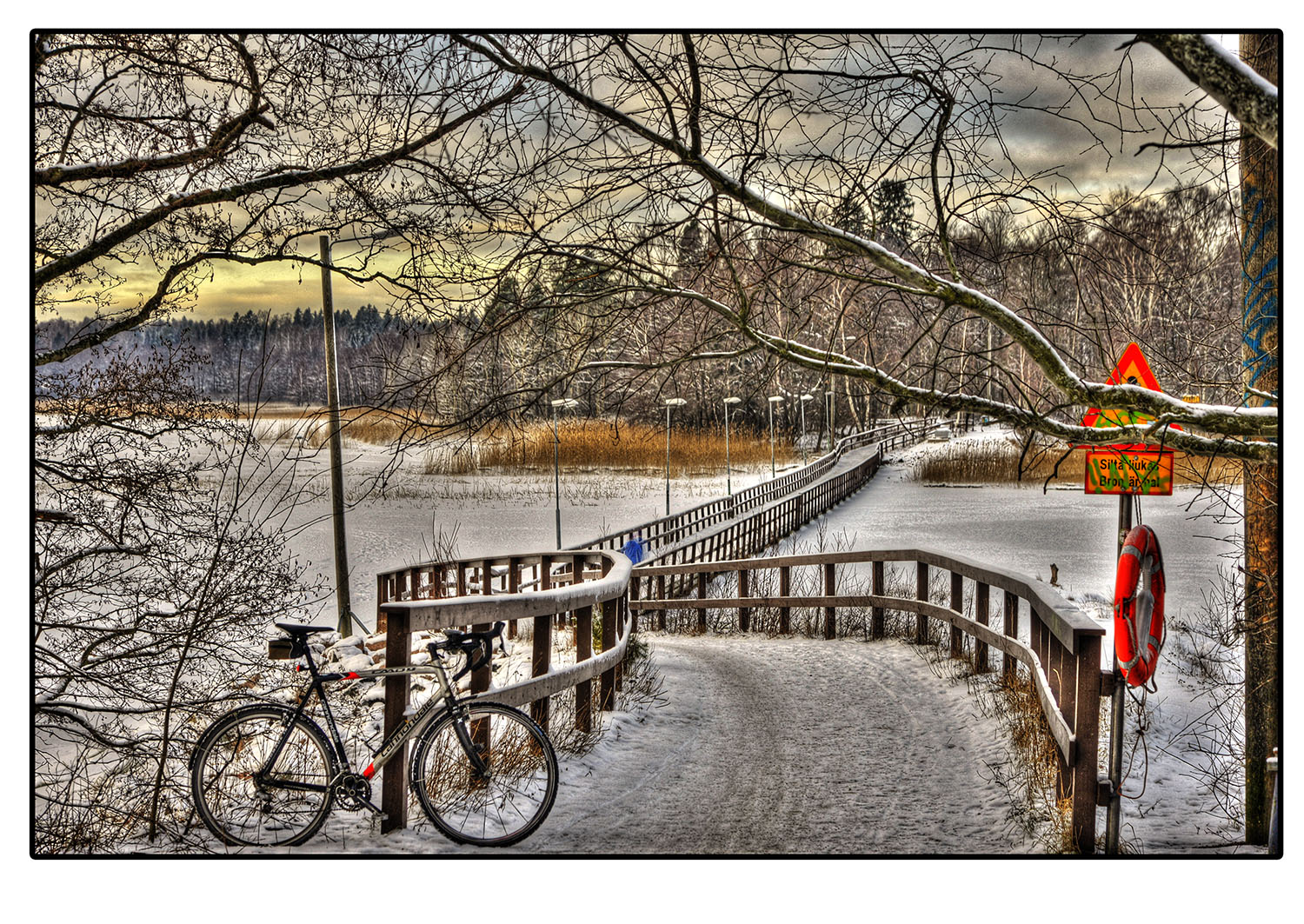 Tämän päivän pyörälenkiltä. Kaikkea mahdollista keliä mahtui matkan varrelle. Jotku vielä ajeli autolla jäillä, itse tyydyin kiertelemään rantoja pitkin.