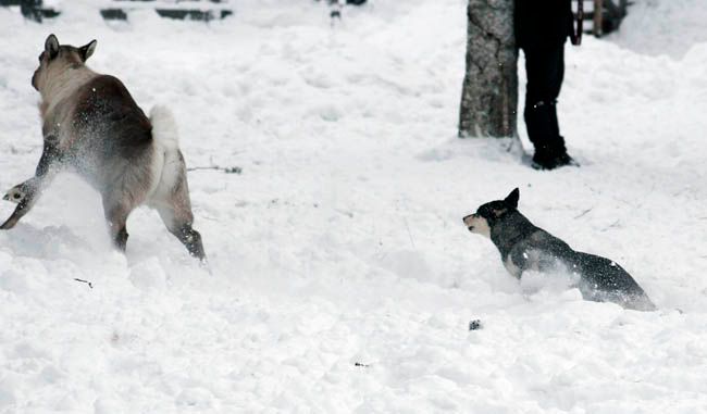 Kaverilla olis kolme veto-huskya, eiköhän tuo lainaa. Mitähän ne syö, lihasoosia? Varmaan pitäis ainaki kolme purkillista ottaa matkaan.