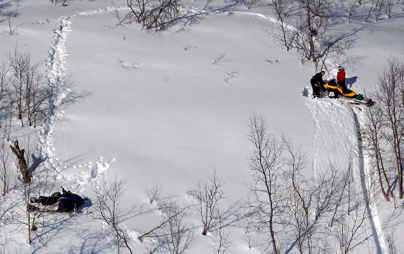 Lauantaina oltiin kelkkareissulla, sunnuntaina tellureeneissä. Meinattiin lauantaista ajella kerrostalon kokoselle jäävuorelle, joka tuola jötköttää ulapalla, mutta ei kehattu yksin lähtiä. Kaverin pollesta oli kato mäntä pilipalasina. Yksin kö lähtee, niin tulee kuolema. Mutta käytiin silti heittään 70 km lenkki tuolla jängällä vuorien keskellä meiän kelekalla.