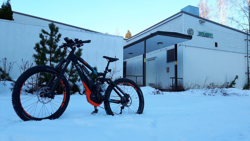 Täältä löytyy Cube Hybrid HPA Race 500. Pyörän ostin syksyllä tarkoituksena ajaa sillä työmatkaa läpi talven ja lisäksi lenkkiä poluilla. Tähän mennessä kilometrejä on kertynyt n.1000 ja mitään ongelmia ei ole ollut. Tällä viikolla oli ensimmäinen loska/vesisade/vaakasuora-tuuli keli ja tästäkin sähkäri suoriutui ongelmitta. Renkaina näin talvikaudella on ICE Spiker Prot. Pitoa ja rullaavuutta löytyy hyvin. Työmatkaa varten pyörässä on tavarateline ja lokasuojat. Poluille lähtiessä ne yleensä otetaan pois. Ainoa mitä pyörään kaipaan on parempi keula poluille. Talvi mennään kuitenkin tuolla mutta kesäksi saattaa vaihtua esim. Rockshox Reba.