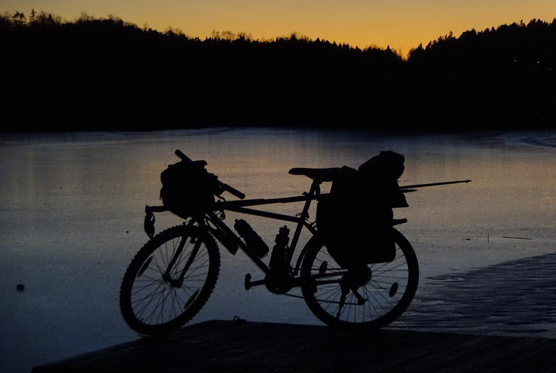 Ajettiin eilen Napapiiriltä Rovaniemen suuntaan, kun huomasimme kaupunkia kohden etenevän pyöräilijän. Pyörä oli aika tuhdissa retkilastissa, joten jollain kaamosreissulla taisi kulkuri olla. Tai sitten joku paikallinen oli viemässä palautuspulloja läheiseen Lidliin.