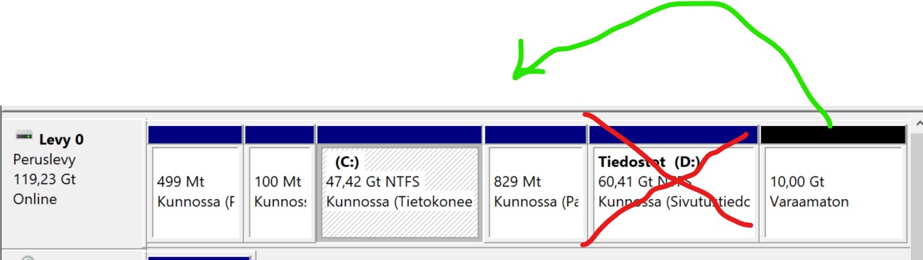 Tai löytyykö jostain ilmaista sovellusta, jolla pääsisi siirtämään ton D: osion sijaintia, jotta C: osiolle saisi yhtenäistä tilaa?