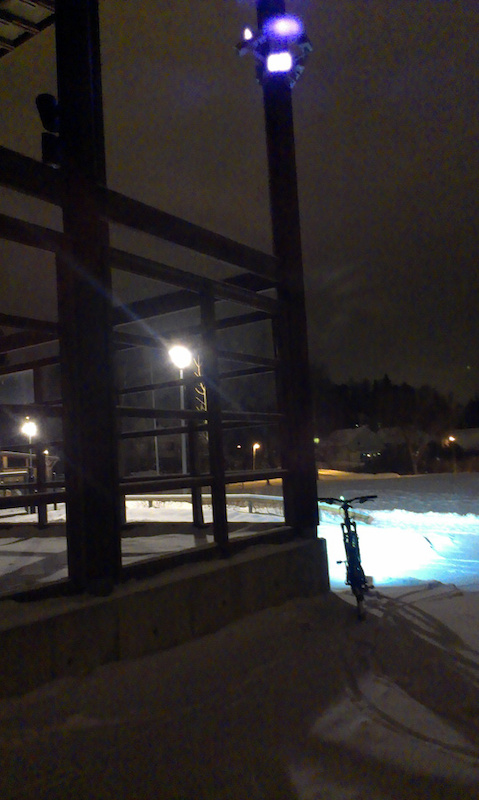 Tarkoitatko noita infrapunavalaistuja valvontakameroita vai räystään alla asustavia puluja? Nyt jätettiin rasti niin lähelle että melkein pitäisi käydä kaivamassa fillari varastosta vaikka talvipyöräilyä en harrastakaan. Tuonnehan voisi vaikka taluttaa :)