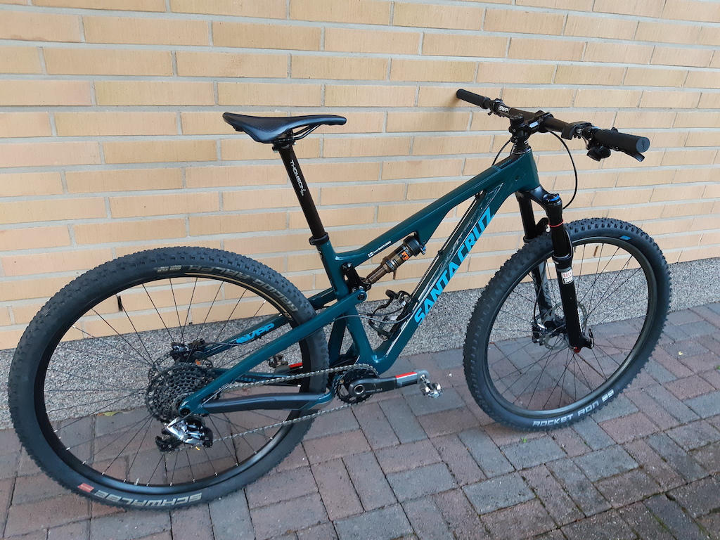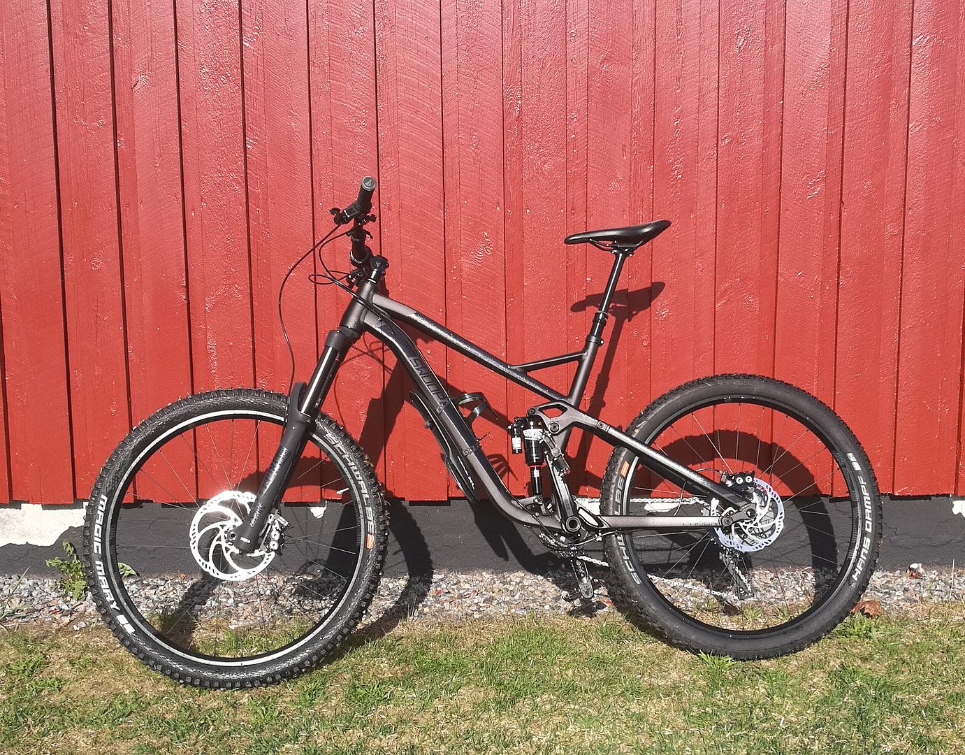 Vanhan Tallboy 2 CC:n tilalle takuuna tullut Tallboy 3 CC runko Forest Green-värisenä. Luonnossa väri on aika makea eikä vastaavia tule joka nurkalla vastaan. Alkuun ajatus oli, että myyn heti rungon ja ostan Blurin, koska se vastaa liki Tallboy 2:sta. Ajattelin siis Tallboy 3 olevan liiän 'järeä' ja 'painava' omiin ajoihin. Heti ekalla testi- ja säätölenkillä nousi hymy kasvoille. Onhan tuolla ihan älyttömän makea tykittää polkuja ja alamäet muuttui entistä hauskemmiksi. Tosi vakaa ajettava ja silti leikkisä. Pyörä on mielestäni tosi hyvin balanssissa. Inan raskaammelle pyörä tuntuu kuin edeltäjänsä, mutta en tiedä onko oikeasti hitaampi. Vielä on jäykkä tolppa, mutta katsotaan tuleeko vielä hissitolppa niin tulisi lisää hauskuuskerrointa :)