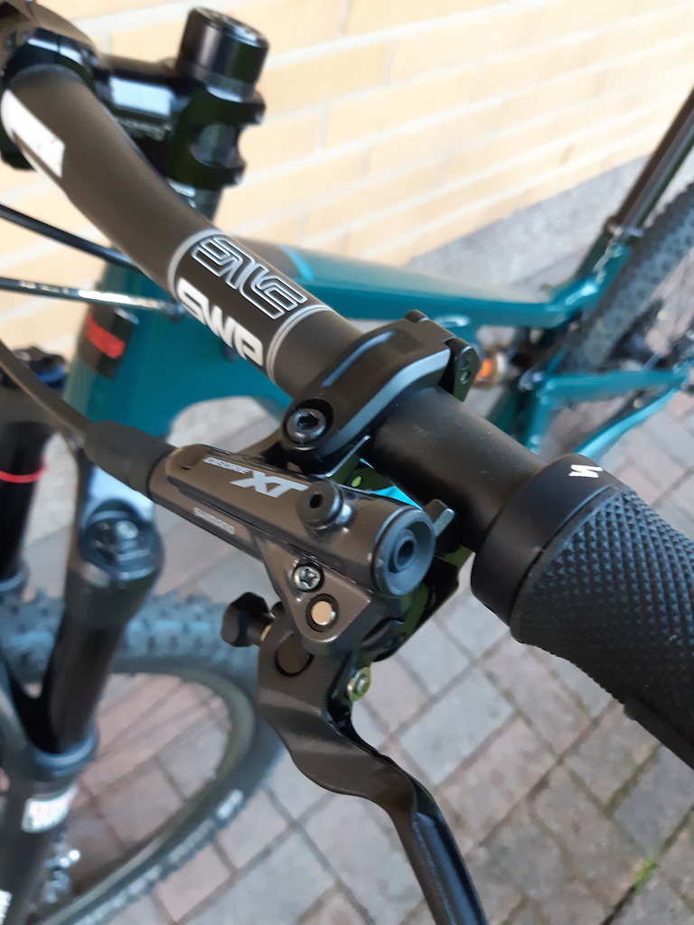 Vanhasta pyörästä siirtyi osia ja voimansiirto edelleen vanhanaikainen 11 spd XX1 osasarjalla. Keulaan päivitin uuden Debonair Upgrade kitin ja keulasta tuli entistä parempi. Keulassa joustoa 120mm eli sama mitä oli vanhassakin pyörässä. Jarruina ekaa kertaa elämässä Shimanot, annoin mahdollisuuden XT-jarruille. Edessä 4-mäntäinen ja takana 2-mäntäinen. Takakiekko on väliaikainen ja sinne tulee myös kuitukehä DT 350-navalla.