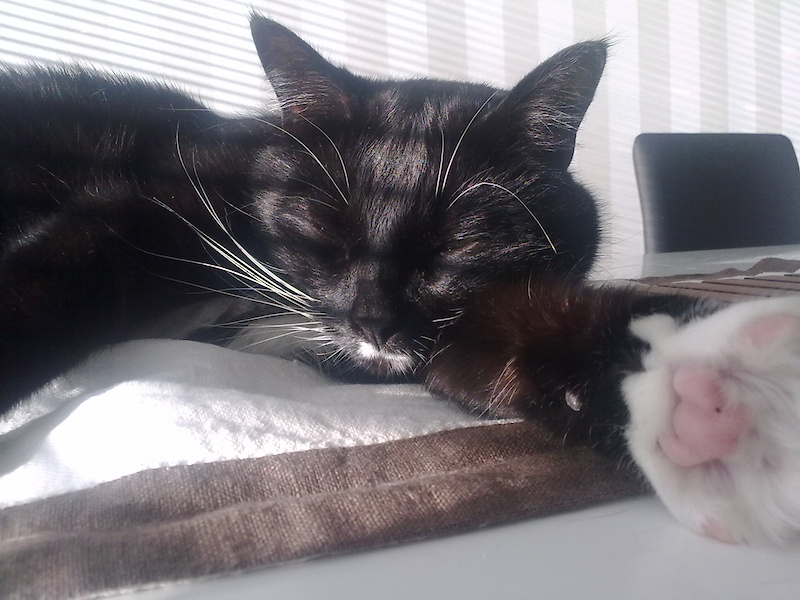 Herra ties kuinka monta kertaa se on häädetty ruokapöydästäkin pois ja ei mitään apua. Kun olin eilen syömässä, se hyppäsi sivupöydältä suoraan pöytäliinan alle ja sieltä tassulla yritti tavoitella mun ruokalautasta. Täytyy sanoa, että ruuat meinasi tyrskähtää suusta ulos kun pieni silkkitassu kainosti lähestyy pöytäliinan alta lautasen reunaa, ei voi olla vihainen:D