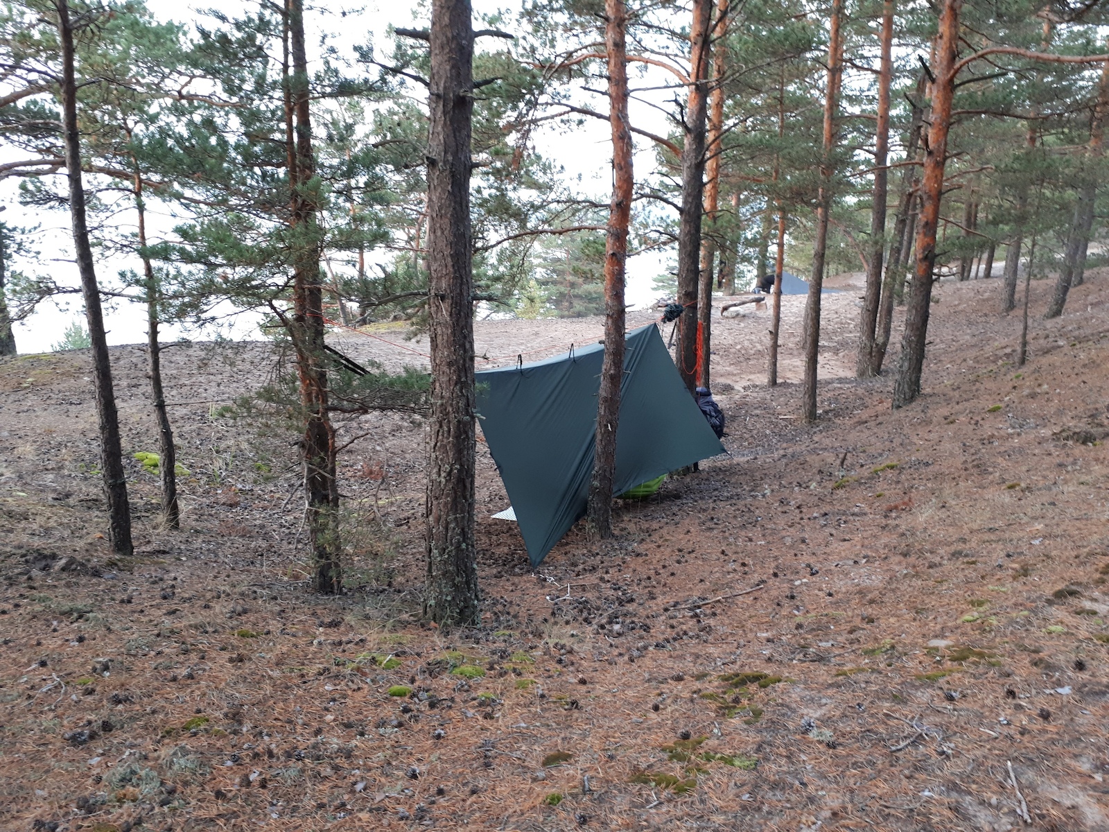 Leiri oli suunnilleen puolessa välissä dyyniä (rannalta metsään), taustalla meri (eihän se mun kännykyvassa näy).