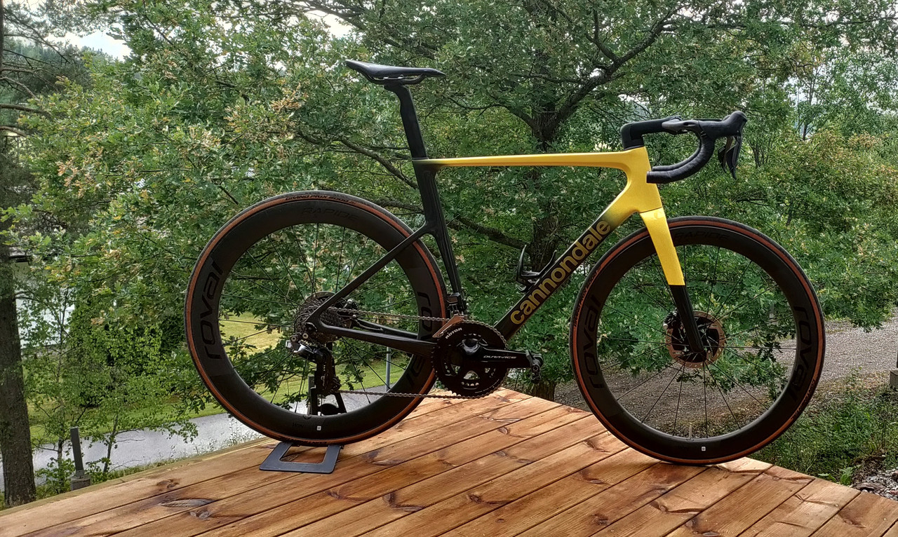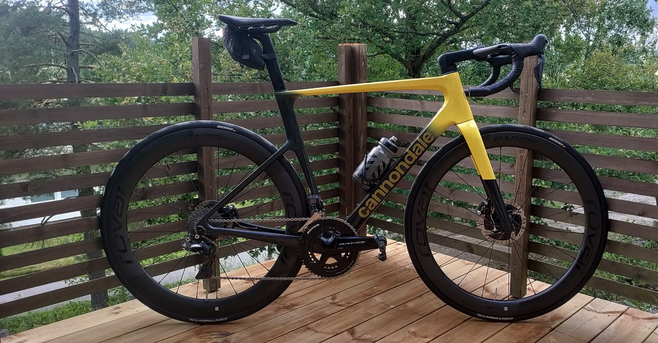 Runko kokonaisuudessaan, kiekot ja voimansiirto on sieltä markkinoiden kevyimmästä päästä kun otetaan huomioon "semiaerous", muuten tuossa ohjaamo 440 g, lateksit ja 28 mm gp5000:t sekä prologon satula n 160 g