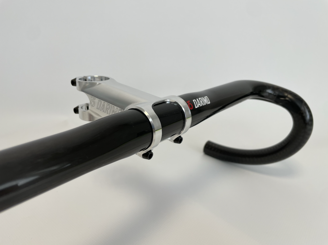 Our design is optimized for carbon fibre handlebars. The clamping zone is not divided in two small plates, both bolts are connected, then the surface pressure over the handlebar is reduced.