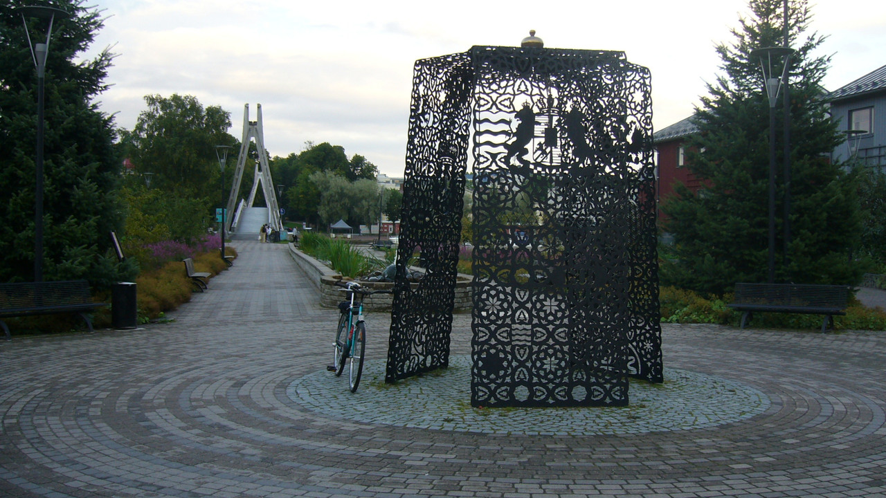 Vanha oli taideteos August Eklöfin puistossa. LINKKI