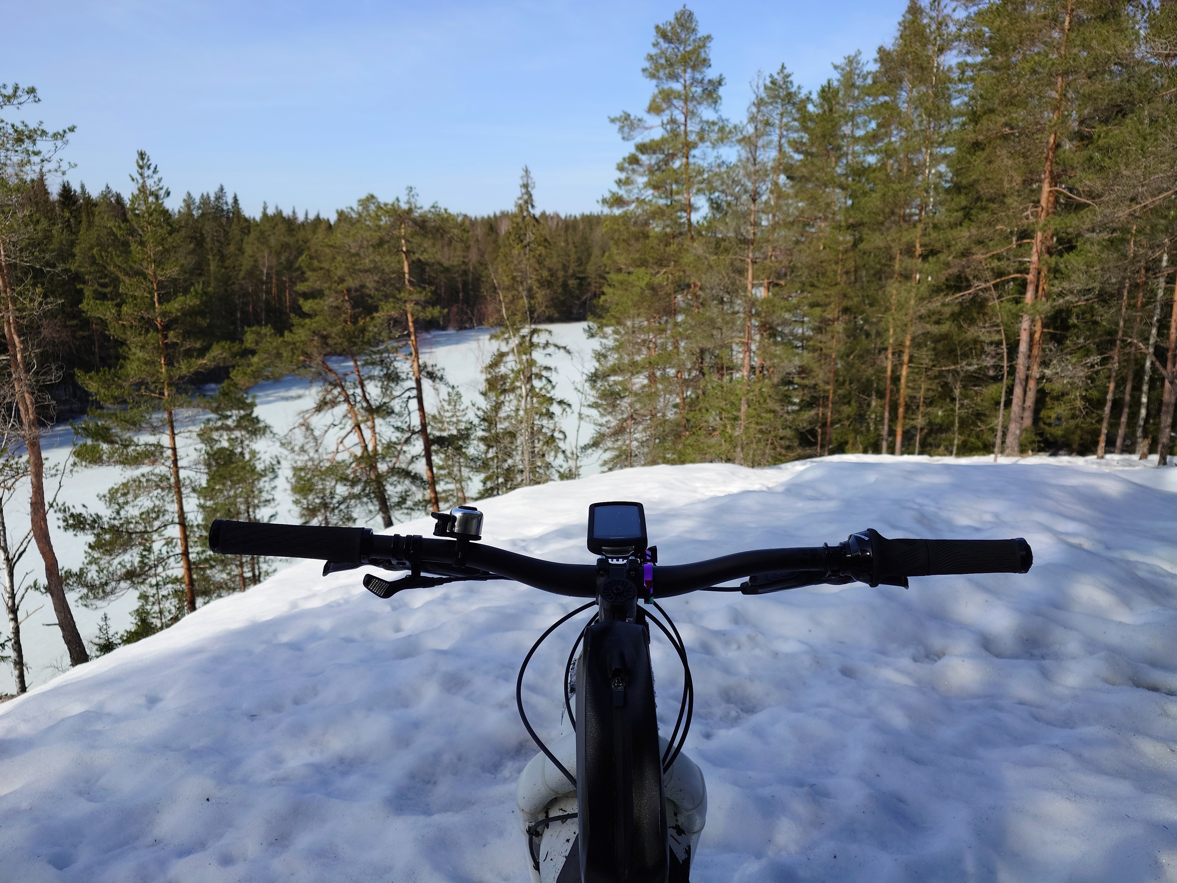 Jämin maastoissa lumifiilistelyjä vielä, kun sitä on. Ensi viikolla taas kuraa tilalla