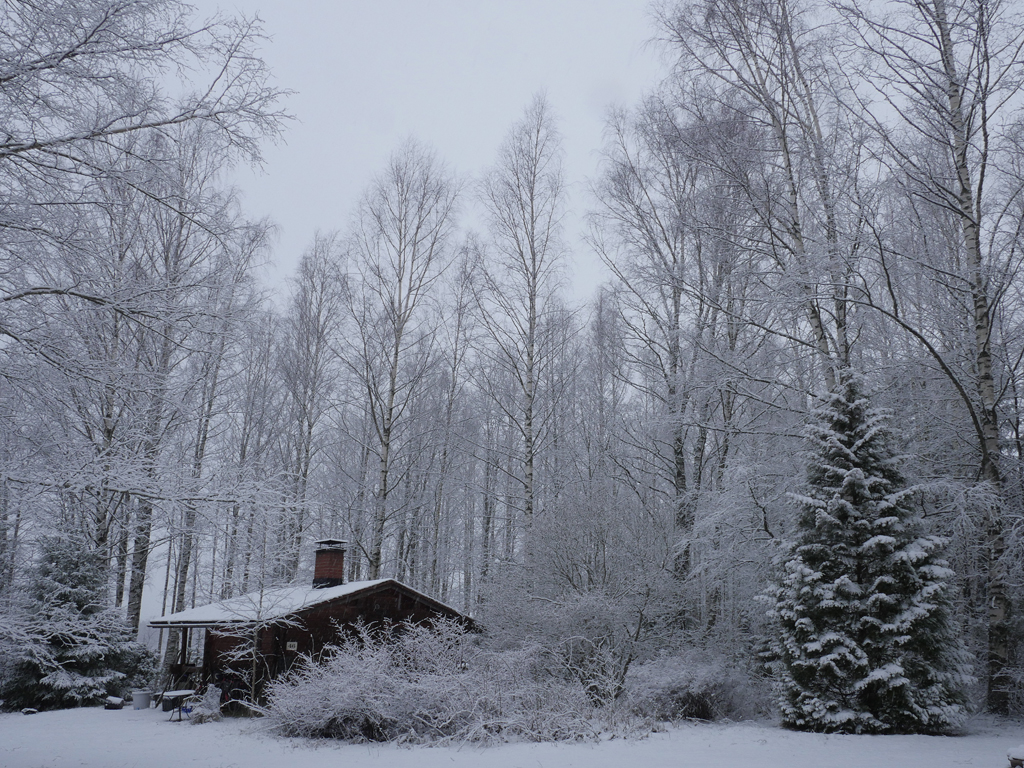 Äsken tuli rakeentapaista lunta vaakasuoraan ja vähän aikaa näkyi myös maassa.