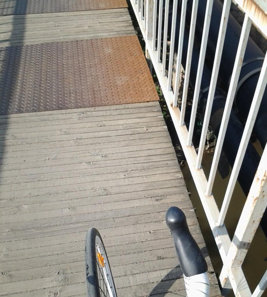Tuli nyt yhdellä tuollaisella täristävällä sillalla käytyä mutta omissa kuvissa ei näy tuota alakaiteen pokkausta tai mikä lieneekään. Vai onko se valon ja varjon keskinäistä leikittelyä. Yhtäkaikki, jääköön jollekin muulle tämäkin rasti.