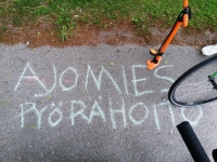 Viikonloppuna kylärinkipyöräilyssä. Pumppu seisoskeli tien varrella yksikseen, ja oli vapaasti käytettävissä.