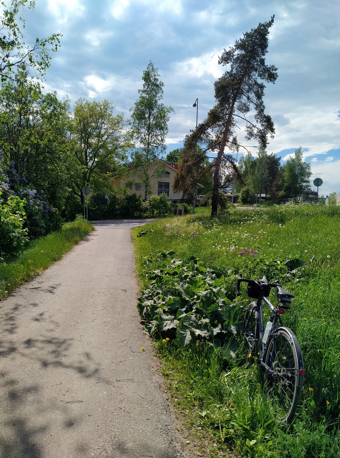 Uutena tämmöinen yksityiskohtarasti. Liinaharja, auringonkukka, punkkari vai nouseva aurinko liikennemerkin naamiaisasuna.