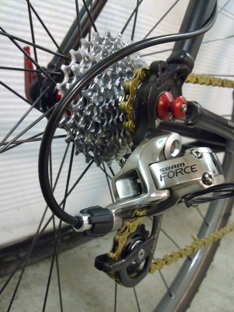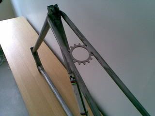 Ohjaamon ja satulan säätö ovat vielä vähän vaiheessa. Myös vaijerit ovat lyhentämättä ja tankoteipit asentamatta, mutta testilenkki on jo ajettu eilen illalla. Uusi ohjainlaakeri puuttuu myös. Pimp-my-cyclo-kuume oli kyllä illalla harvinaisen korkealla, kun piti valita varastosta juuri tämä ketju :rolleyes: