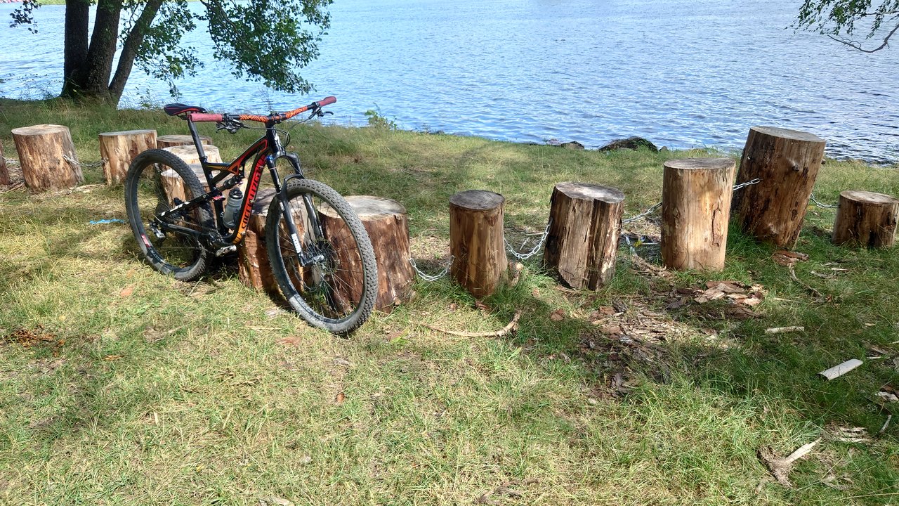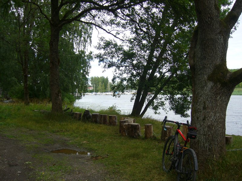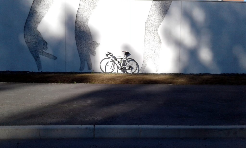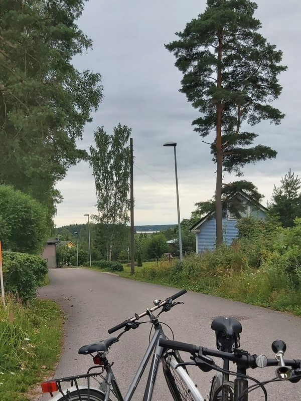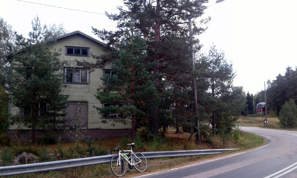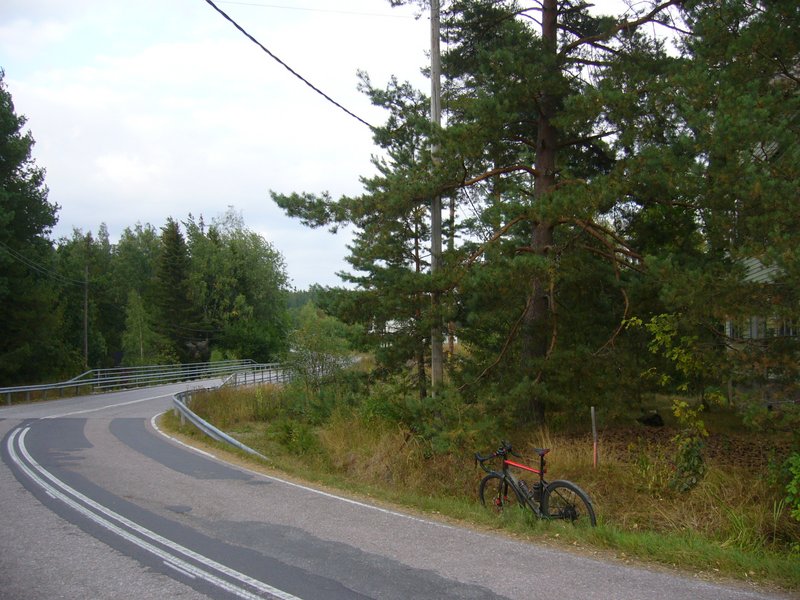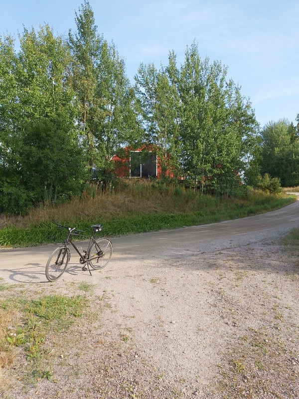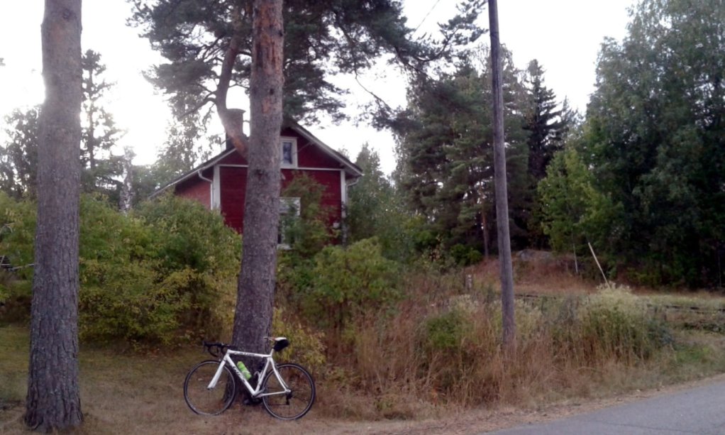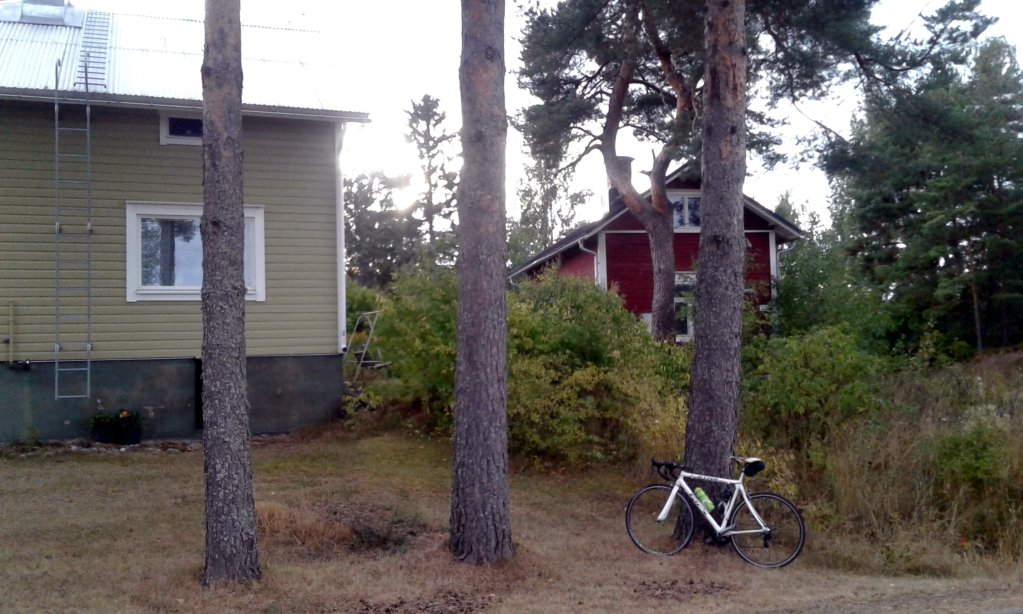 Kuten näkyy, parkkeerasin fillarin pikkaisen tyylittömästi lähempänä tietä olevan talon tontilla seisovaa mäntyä vasten.