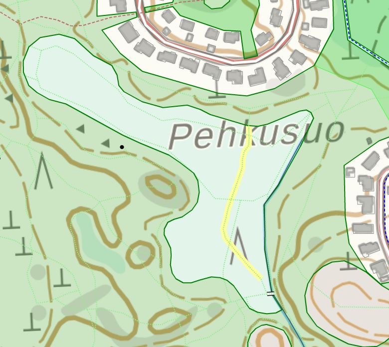 TK_W_mtbwinter: värikoodaus mtb:scale-tagien mukaan, viivanleveys mtb:winter-tagin mukaan. mtb:winter=0/3/'puuttuu' pisteviivalla, mtb:winter=2/yes kapealla katkoviivalla, mtb:winter=1 peruskatkoviivalla, ladut ja mtb:winter=no punaisin raksein.