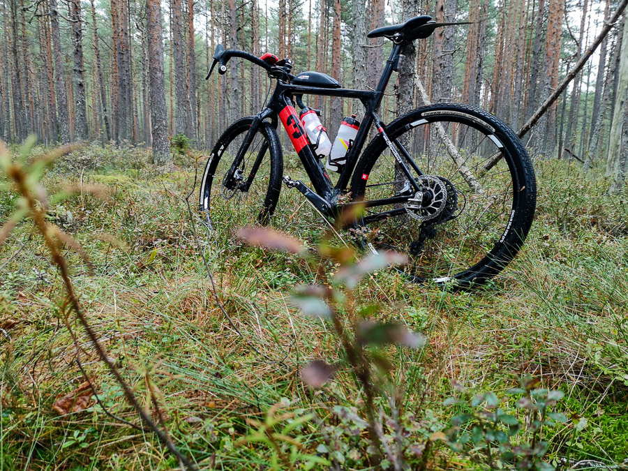 Pikkaisen väärässä paikassa on gravel-pyörä taas. Kesti tunnin kävellä tuonne ja takaisin avosuon laitaa. Perkule kun unohtui laittaa Sealskinzit jalkaan.