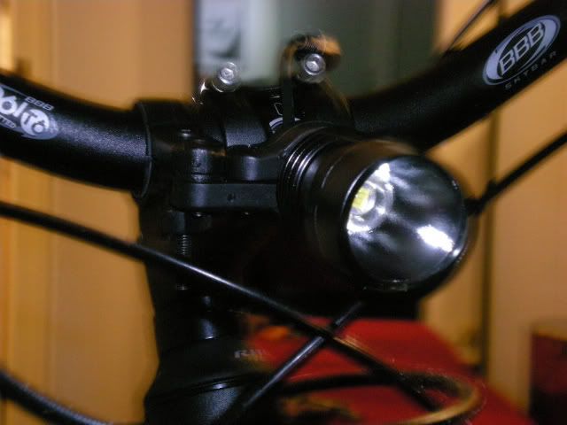 Mä laitoin yhden version suoraan kiinni stemmin alempiin ruuveihin. Lampun runko voi olla pienempi, kun lämpöä voidaan johtaa stongan kautta hitoilleen. Kiinnitys on kanssa niin tukeva, ettei lamppua ihan heti pöllitä, tai irtoa rymistellessä