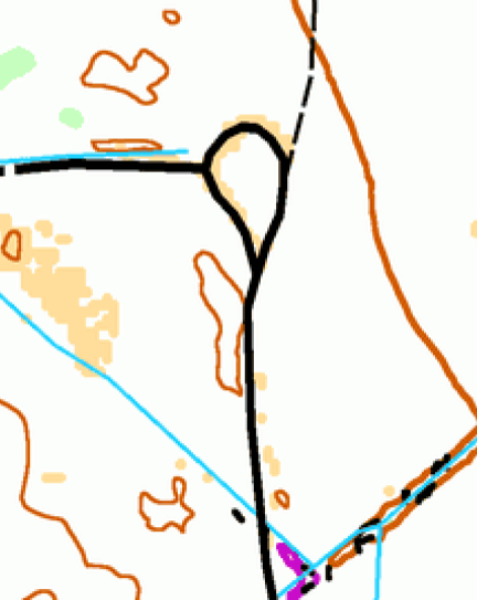Rastikuvan suunnasta en ole uskoakseni koskaan ajanut - jos se nyt mikään puolustus hiffaamattomuudelle on. Oma reitti on kulkenut karttaviivan katkoviivaa eli poluntapaista ja olen siis näköjään painellut sivuilleni vilkuilematta hiekkatietä Korsontielle...