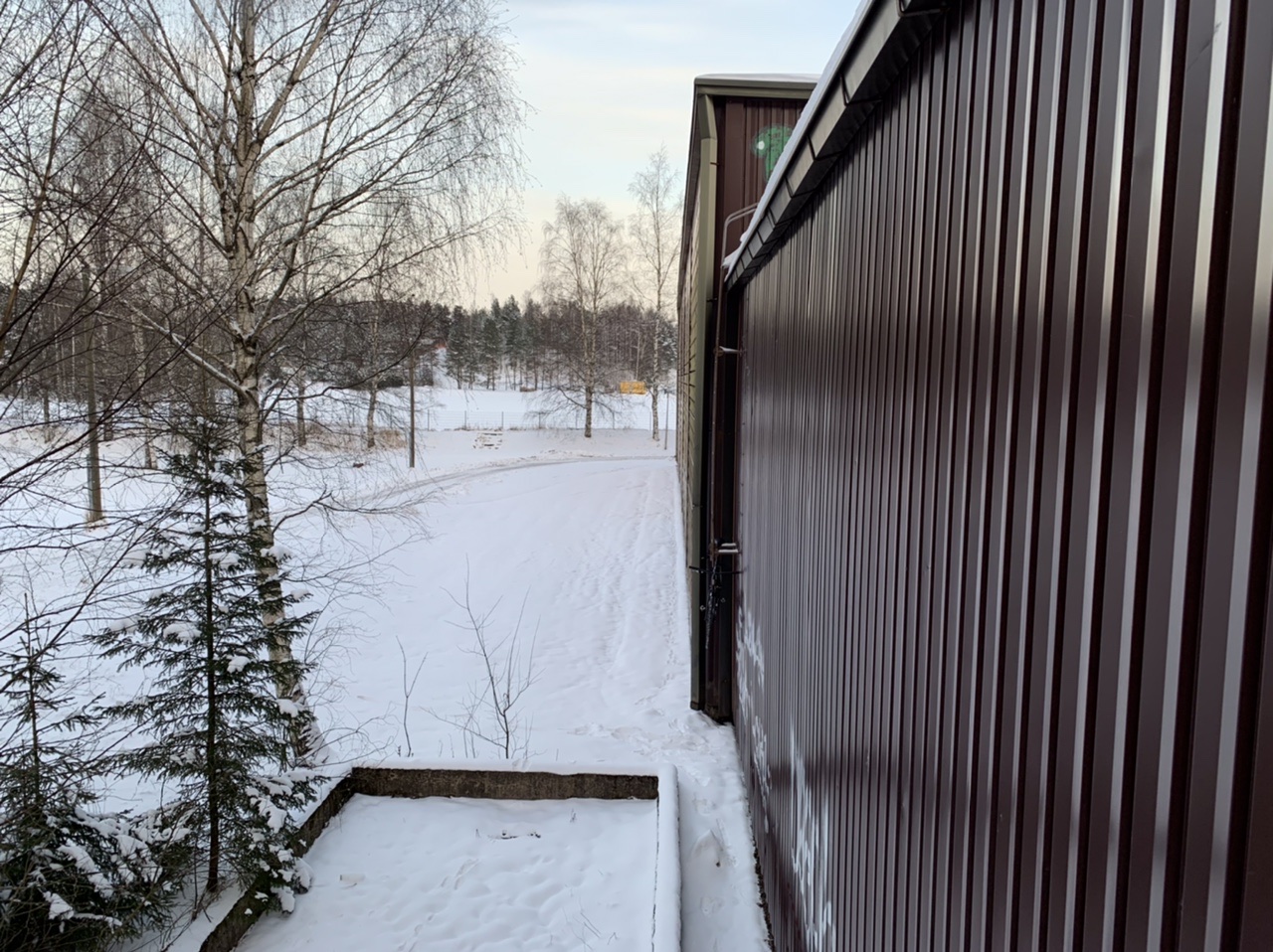 Kuten näkyy, kuva on sen verran vanha että sen jälkeen on ehditty tehdä kattoremontti. Edellä mainittu hiekkatie kulkee tuossa kuvaajan ja talon välissä...