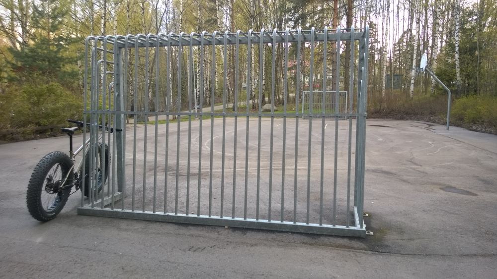 Vanha on Tapaninvainiolla (?) olevan melontavälinevuokraamon pyöräteline: