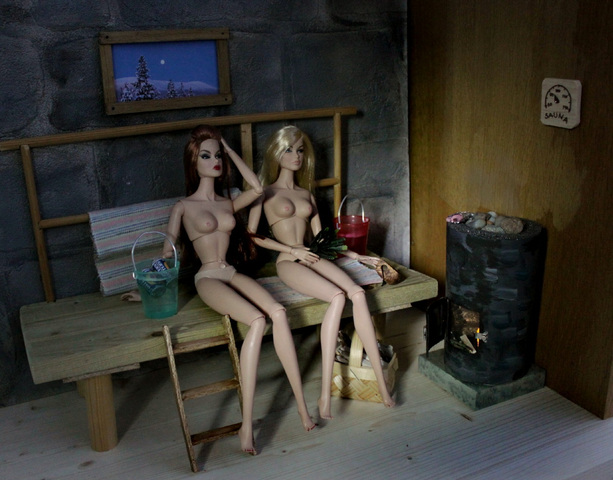 Mun suosikki. Kokeilin saunakuveja, kun ne voi olla hämysiä. Ite nikkaroin saunakalusteet. Kiuas on Colnagon juomapullosta, ja sinne menee ledivalo sisään. Mittari on kyllä "toimiva" ( kiva ottaa saunakuveja -17 asteen pakkasessa) tämä oli hauska projekti, ennen pukemisia.