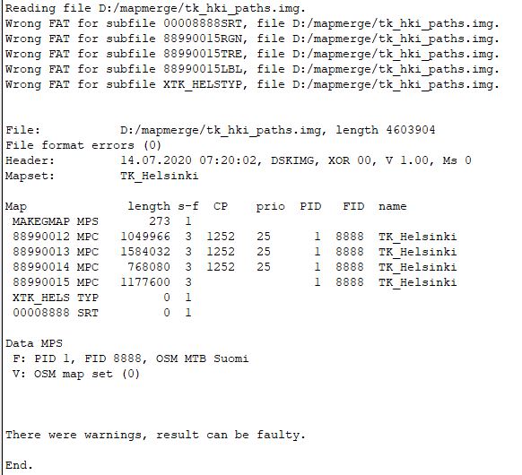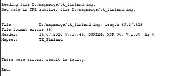 Ajattelin mapsourcella vilkaista, miltä näyttää niin huomasin että gmaptool sanoo myös tuollaisia noista garminiimageista. Onkohan siellä joku muu ongelma päällä tällä hetkellä vai pitäisikö noiden aina olla virheellisiä ? Vanhat imaget ei ainakaan mitään herjanneet.