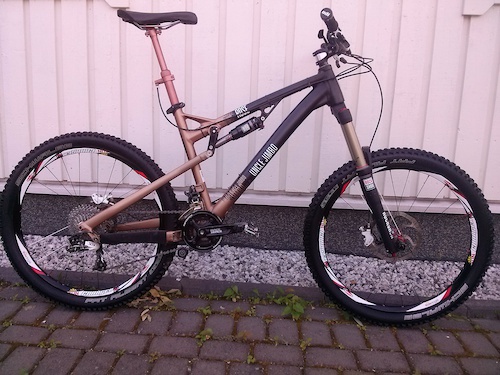 Runko Gary Fisherin kunniaksi tehty Trek Sawyer ja keulana Jonesilta apinoitu kustomimitan Truss, jonka tehnyt kotimainen Konga Bicycles. Terästä siis koko hoito. Muita palikoita FSA leekeri, Thomsonin putkiosat, Brooksin Team Pro satula, Saint keskiö, RF Turbinen kammet, Sram XO 1x10 vaihteisto, Hopen Mono Mini jarrut ja Candyn vatkaimet. Kiekoissa DT 240s navat DT pinnoilla ja saksanpoikien 30mm halpiskehillä, päällä 2.4 Ardentit Stanin litkuilla. Kaupanpäälle joku rosterinen pulloteline..