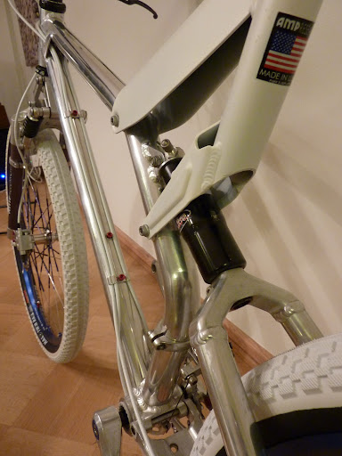 Tässä kuvaa juuri valmistuneesta AMP B4 projektista. Siinä on aika paljon alkuperäsitä mm. runko ja etuhaarukka, mutta muutamilla uusilla osilla höystettynä kuten näette. Voipi olla että jonain päivänä laitan peruskiekot ko. aikakaudelta ja stemmin mutta voi olla myös etten laita. Painoa on nyt 11.4 kg josta veikkaan että saa pois puoli kiloa kun laittaisi kevyemmät gummit ilman sisärenkaita.