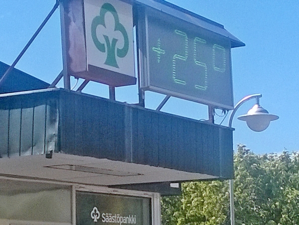 Terassipöydän mittarin sisälämpötilanäytöstä loppuivat lukemat ja näytössä luki HH.HH. Ulkoanturin mukaiset lukemat tasan 62 astetta :D