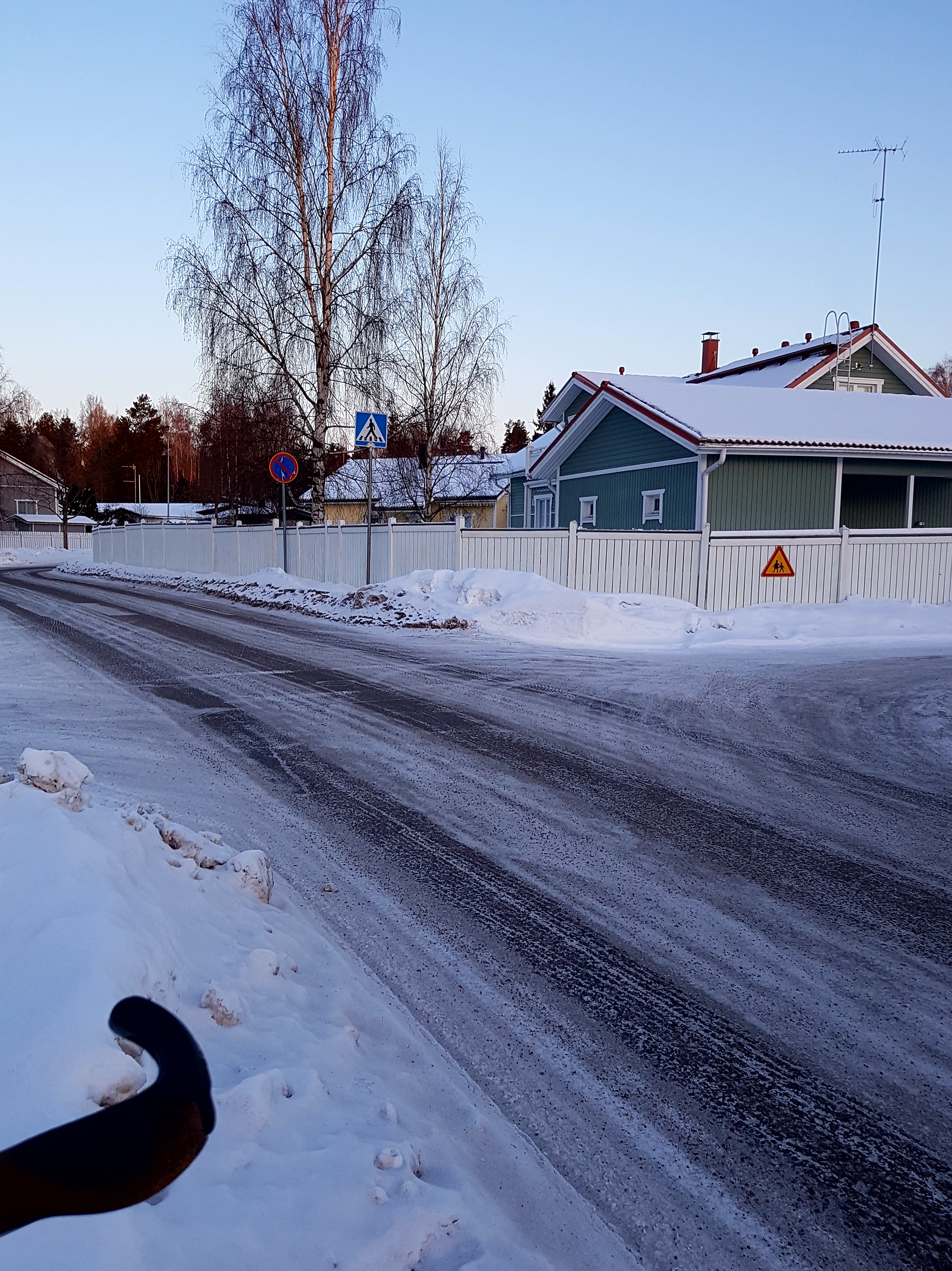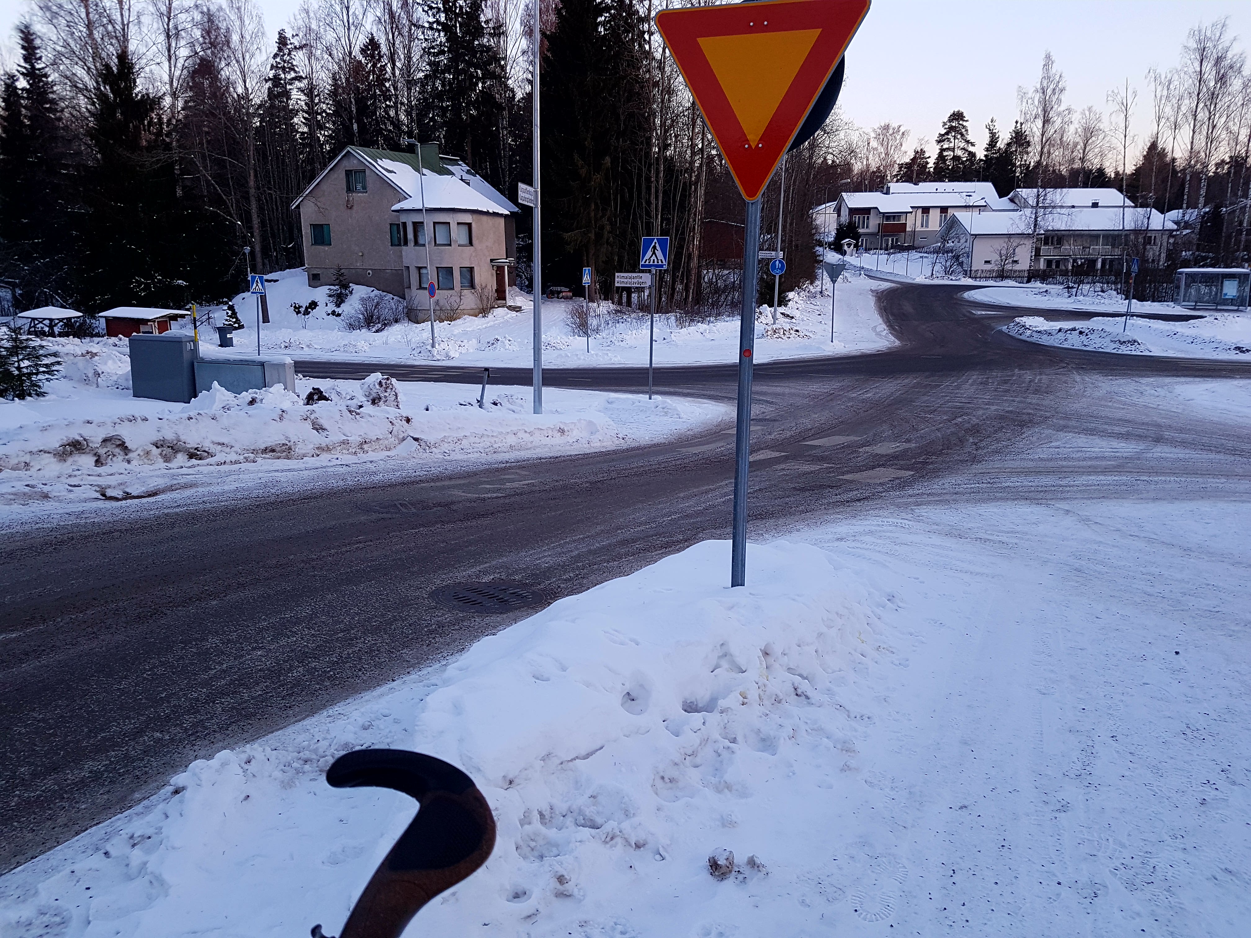 Tienpinta näyttää olevan talvikunnossapidon ykkösluokkaa eli se on varmasti yksi seudun pääteitä, jota bussit ja jakeluliikenteen kuorma-autot käyttävät. Tämänkin olin itselleni melko selvästi onnistunut tekemään (eikä pienemmillä kaduilla useimmiten ole kelvejäkään).