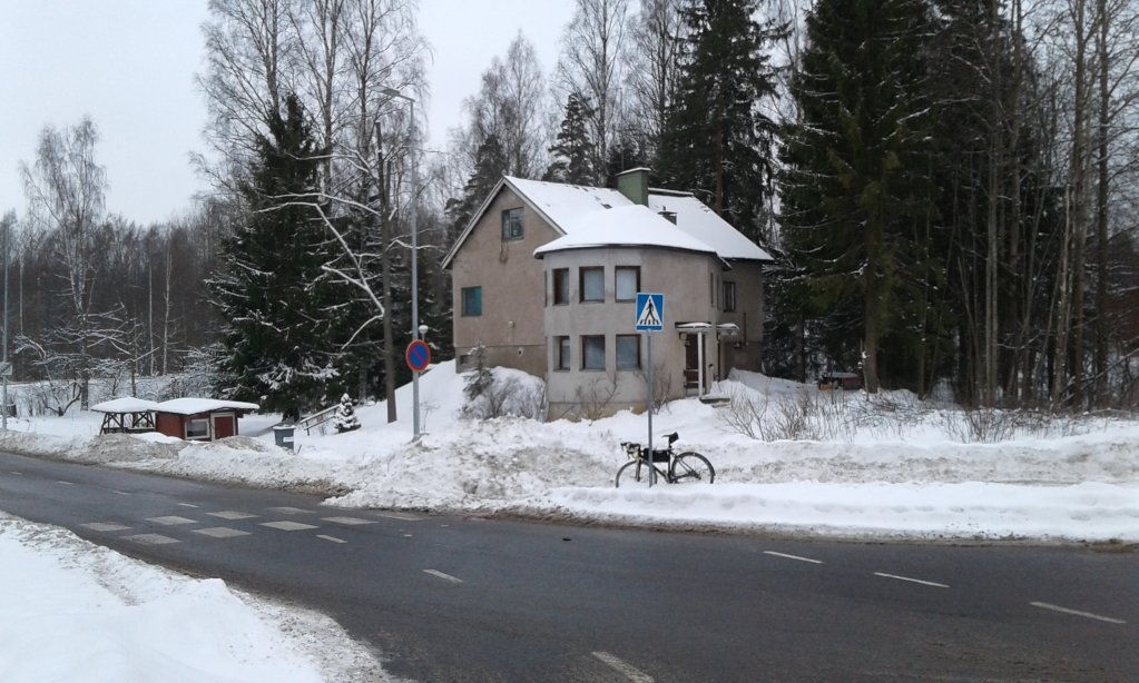 Ja jos joku kernaasti kyllä hakisi tämän rastin, muttei ole vielä keksinyt mistä sitä hakea, niin voin kertoa että en ole mikään sivuteiden etsijä enkä umpikujien koluaja vaan enempi sellainen pääteillä pysyttelijä eikä rastina olevan talon nähdäkseen tarvitse minnekään poiketa - ja sen on takuulla nähnyt yksi jos toinenkin pääkaupunkiseudun pyöräilijä. Ehkä vain ne jotka pysyttelevät Espoon suunnalla tai eivät juuri Tuusulanväylää idemmäksi eksy ovat voineet välttyä sen ohi ajamasta...
