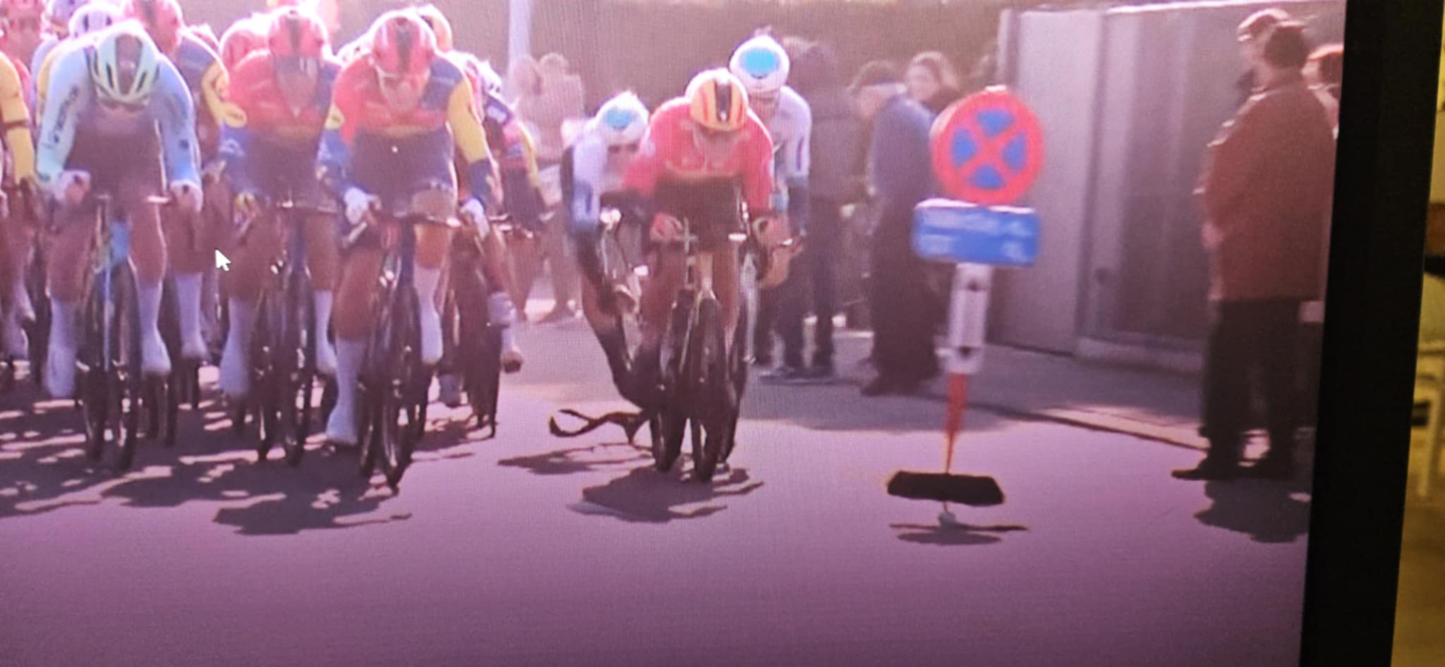 Provencen 3. etappi. Mitä järkeä laittaa hidaste (vaikkakaan ei korkea) loppusuoralle?! Onneksi Ackermannille ei Israel Premier Techin mukaan käynyt sen pahemmin. Selvisi ilmeisesti ilman murtumia, vaikkakin sai muuten tuntuvia kolhuja.