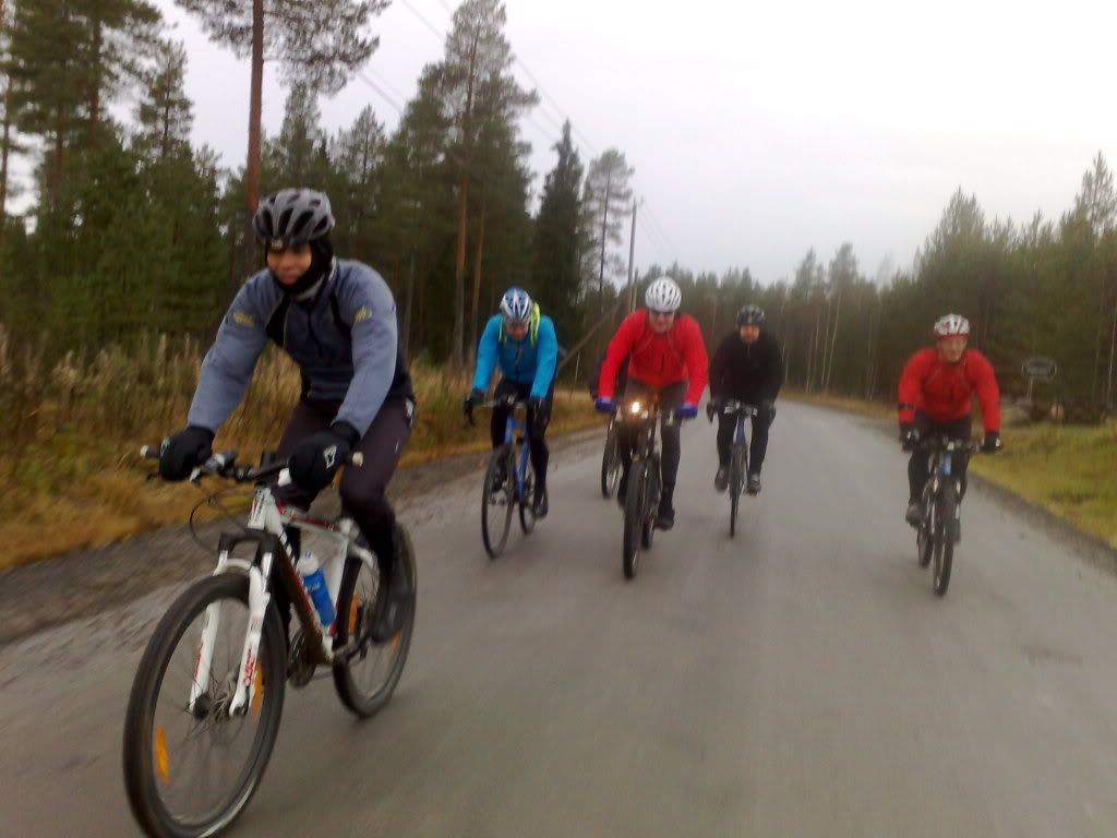 Tänään ajeltiin 08-lenkki komean kirkkaassa syksyisessä pakkaskelissä. Shellin pihalle kokoontui aamukasilta 9 pyöräilijää. Aamu oli juuri valjennut eikä lamppua vielä tarvinnut. Aurinkokin suunnitteli pikkuhiljaa horisontin yli nousua.