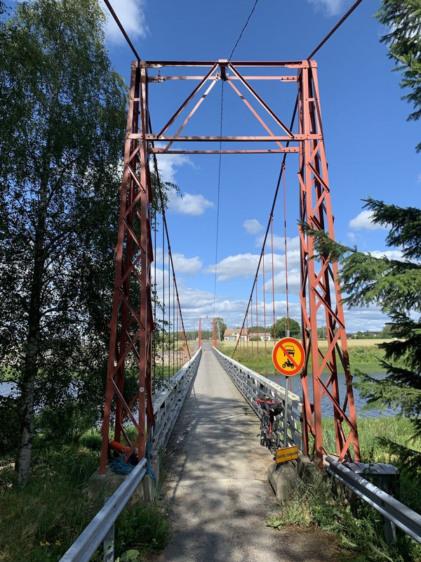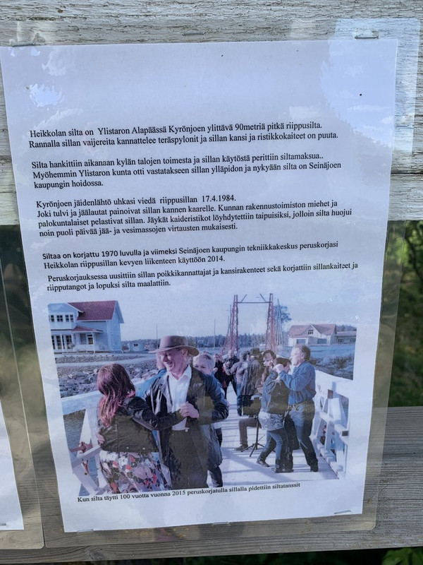 No tämähän on Heikkolan riippusilta tuossa noin. Löytyi näemmä useampikin omakin kuva tästä viime kesäkuun reissulta, kun en jaksanut odotella sopivaa junaa Vaasassa vaan kiemurtelin kummallisia reittejä Seinäjoelle.