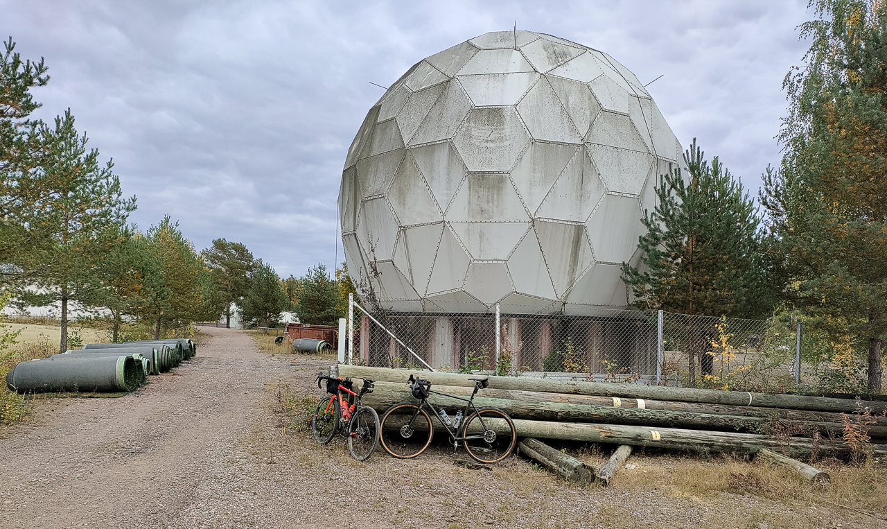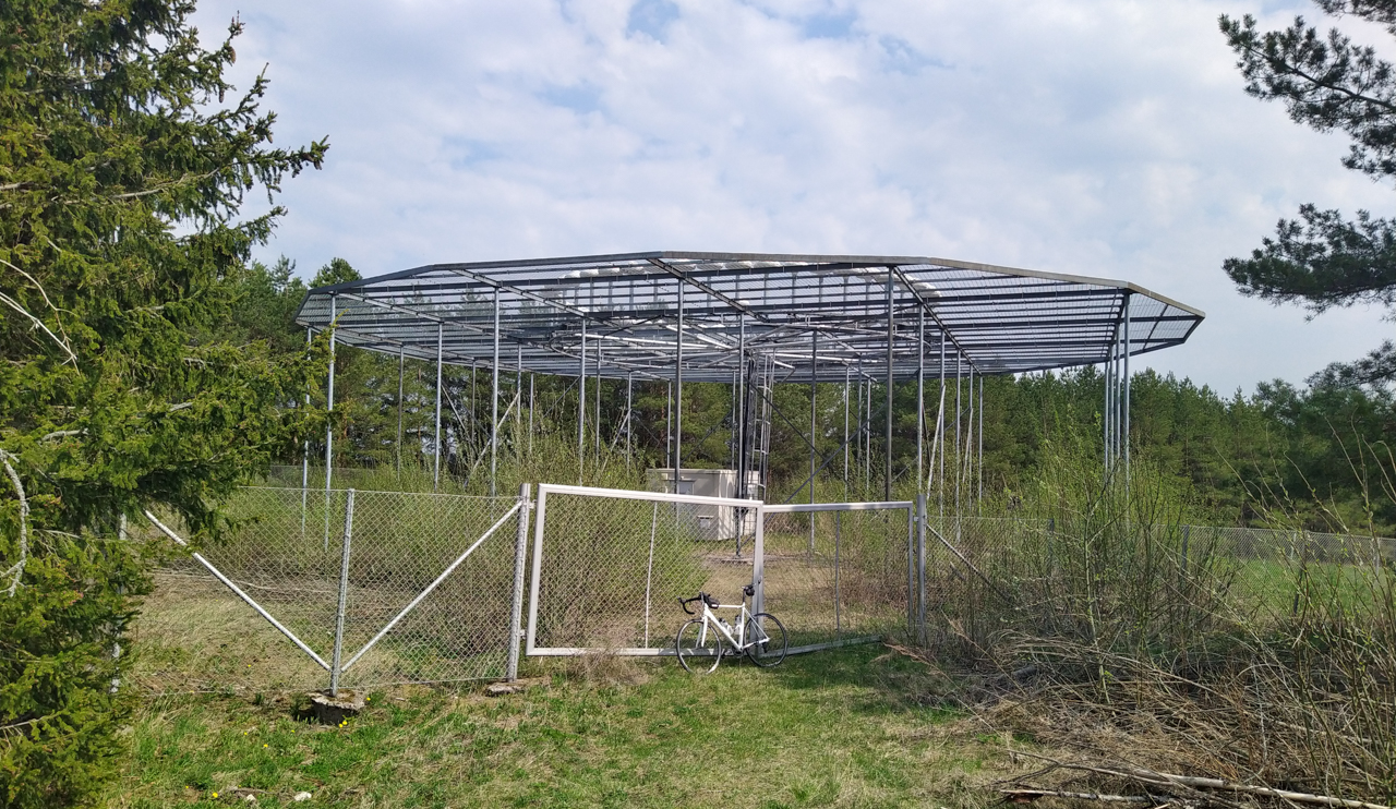 Pallot sijaitsee Karkkila-Hyvinkää -radan varrella, tässä, rasti 861. Itse olen arvellut noiden olevan säätutkia tms. Olisko paremmin aidattu jos olisivat sotilaskäytössä? Tai sitten vaan lietelanta-altaita, joihin on vitsinä laitettu tuollainen kupu :)