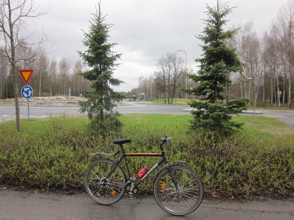 Uusi rasti on sitä rakastamaani sorttia eli paikasta josta tiedän ajaneeni useampaankin suuntaan, mutta johon en ole kiinnittänyt huomiota senkään vertaa että muistaisin millä Vantaan kolkalla se sijaitsi. Yksi mahdollinen kiertoliittymä tuli mieleen, mutta sen keskellä olikin matalia istutuksia. Ehkä hyvä niin, sillä muuten olisin saattanut hypätä uudestaan pyörän selkään ja osua nyt säätutkan kuvassa näkyvään vesisateeseen...