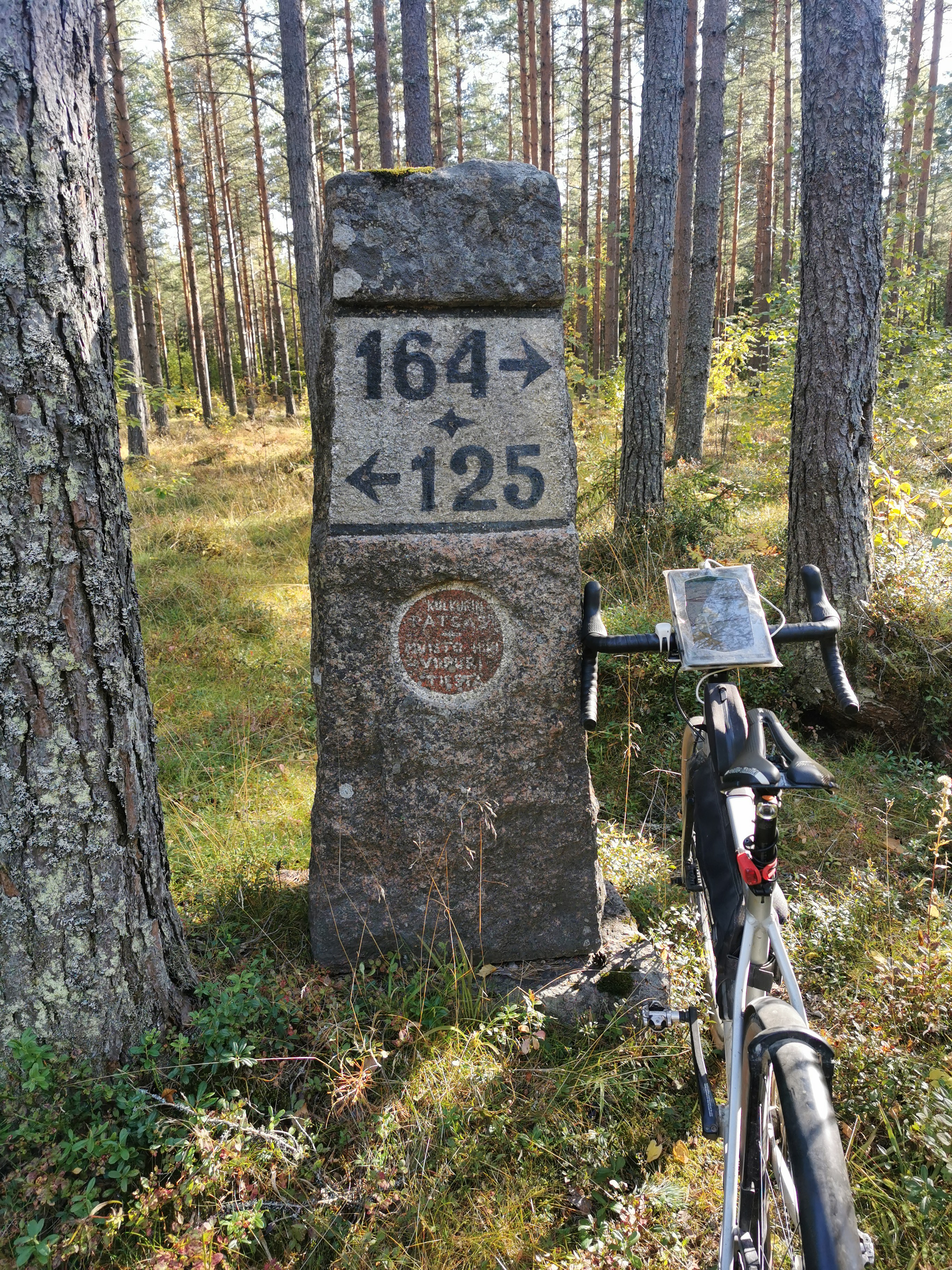 Tuo kilometripylväs on Vanhan Viipurintien varrella Haminassa.