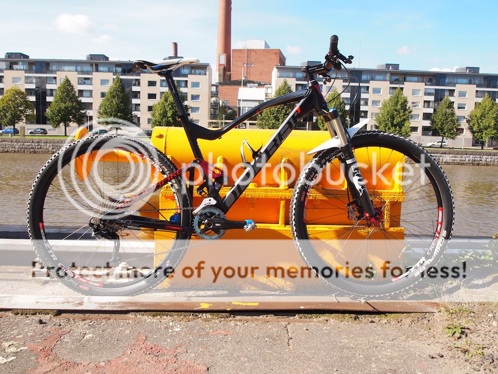 Mondraker Tracker RR 29 2014, tällä on menty parisen kuukautta. Talven aikana vois päivittää vaihteiston narrow-wide -tyyppiseksi vaikkapa mustalla rattaalla ja etsiä omalle takalistolle sopivan paremmin värimaailmaan osuvan satulan.