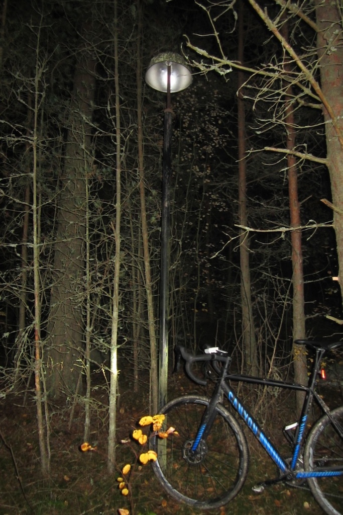 Tuo ei käytössä oleva katulamppu on matkanvarrella, kun menee Halisten koskelta Ravattulaan metsiä pitkin.
