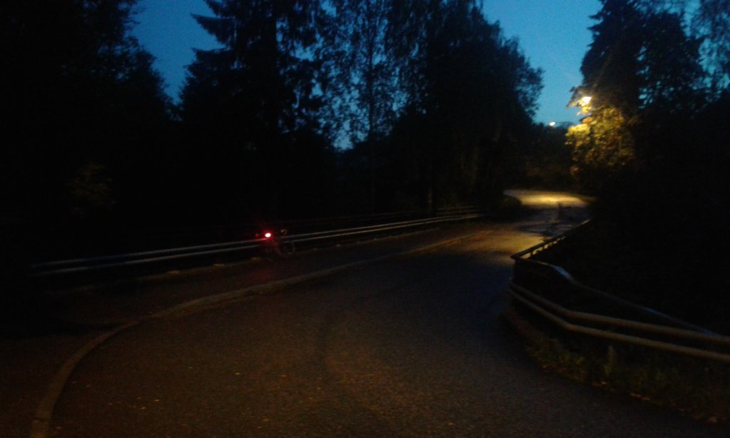 Voisi kuvitella, että tuossa sillan alla virtaa joki/puro, mutta en kyllä keksi millään, että mikä. Voisi myös kuvitella, että koska Firlefanz ymmärtääkseni asuu Helsingissä tai Vantaalla, hän olisi pimeydestä päätellen ottanut kuvan matkalla kotiinsa, siis rastialueen etelälaidalla. Ei silti sytytä.