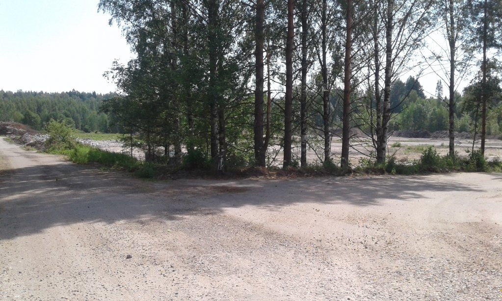 - aidan takana näkyy asfaltti- ja sorapintainen alue ja rakennuspurku- tai maa-aineskasoja