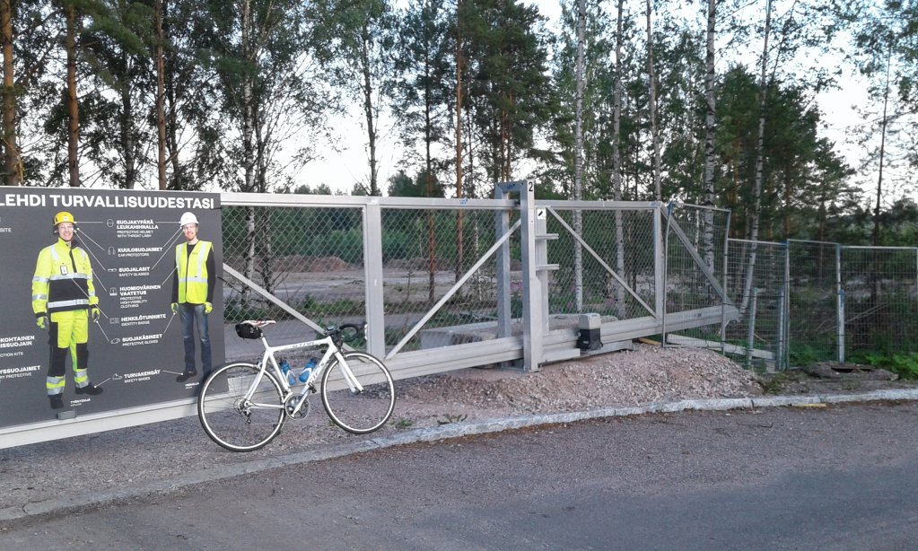 Tiet voi nähdä Stravan Heat Mapissa hyvin ohuina suorina viivoina eli muutama muukin on ilmeisesti joskus ajaneet avoimesta portista. (Alueelta kuului jonkin raskaan työkoneen ääniä ja raskas maansiirtokuorma-auto ajoi sisään sinä aikana kun käväisin ottamassa kuvan.)