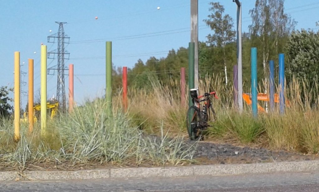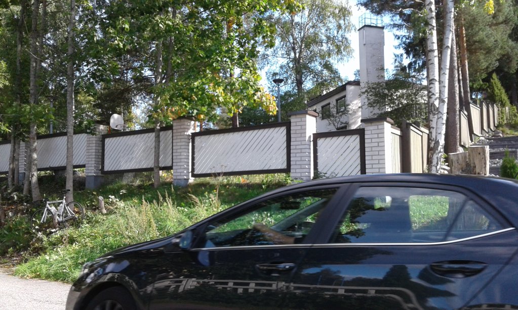 En ole pyöräilykunnossa, enkä tunne paikkaa, mutta luulisin noin ruman aidan jäävän helposti mieleen. Sovitus maastoon on niin kömpelö, että paikoin voi pohtia, jääkö enemmän tyhjää aidan alapuolelle vai yläpuolelle. :D