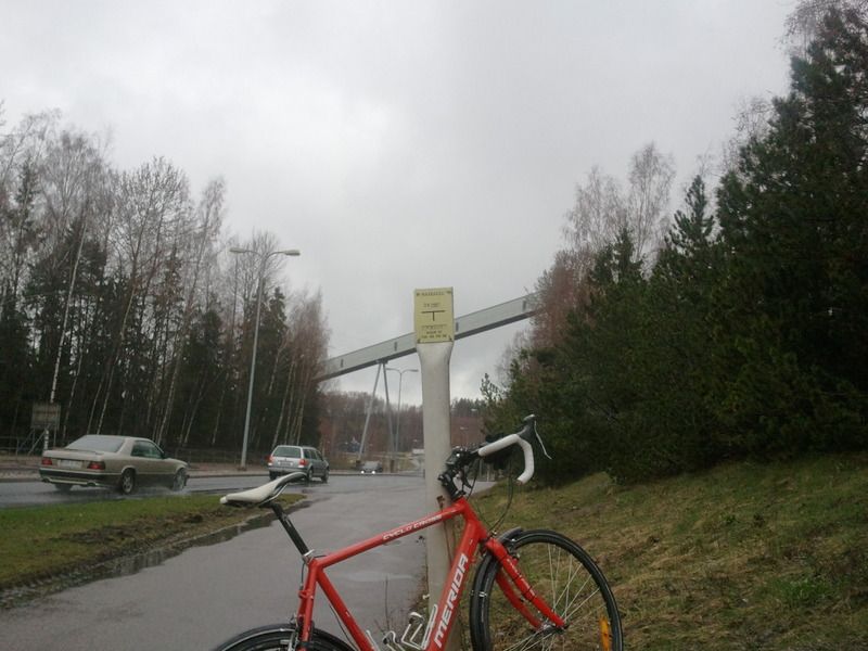 Tuota Viggen asettamaa rastia pohdin hyvin ja pitkään, mutta en vaan onnistunut keksimään missä se on. Eilen sitten olin liikkeellä autolla ja huomasin pyöräilijän tien varressa ottamassa valokuvaa... (Olin siis tulossa suunnilleen niinkuin tuo Saab tossa Fuugan kuvassa...) ja sillä hetkellä keksin, että kyse on tästä rastista !! :o Luultavasti en kuitenkaan päässyt todistamaan tätä Fuugan kuvaussessiota, koska menin tuosta paikasta noin klo 17:20, joten aika rivakasti kuvat olisi tulleet nettiin....