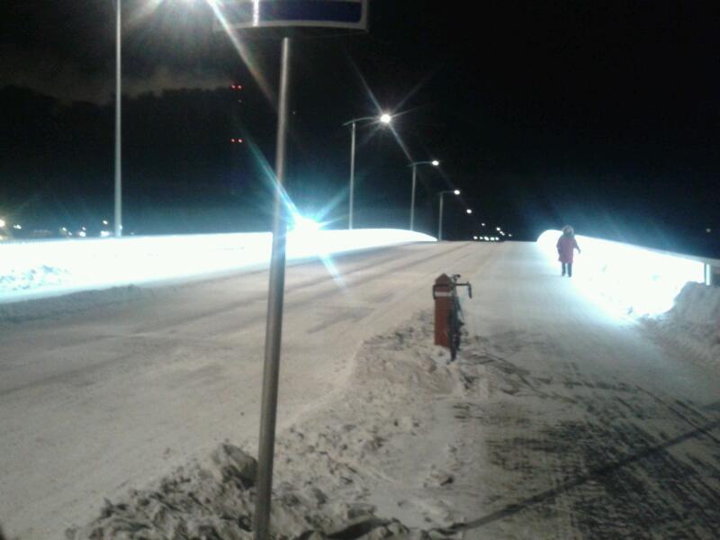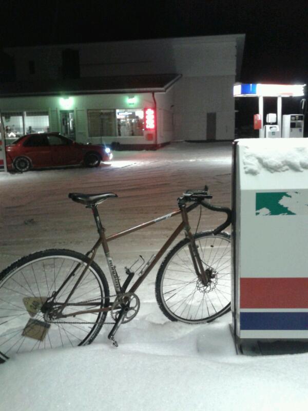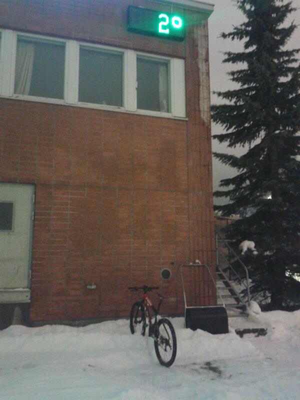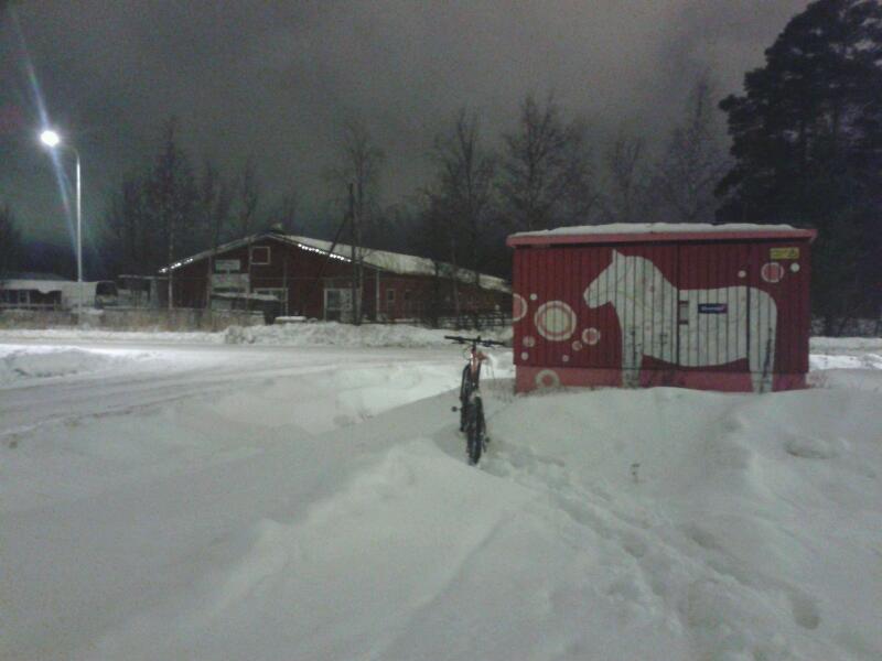Jos nostais auton perään pyörän ja kävis ottaa kuvan. Ei noin pohjoiseen pysty tähän aikaan vuodesta lähtemään.