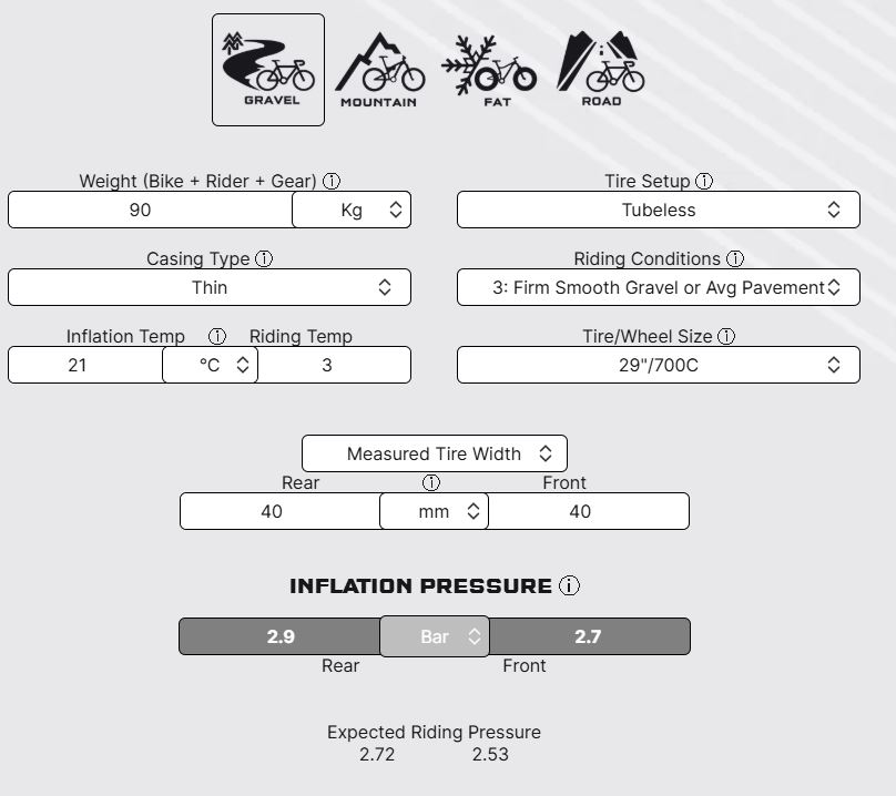 Maastossa mun ajot on hidasta etenemistä (täysjäykällä), niin mulla paineet ovat alhaiset, rullauksen kustannuksella. Multa loppuu maastossa ensin osaaminen.