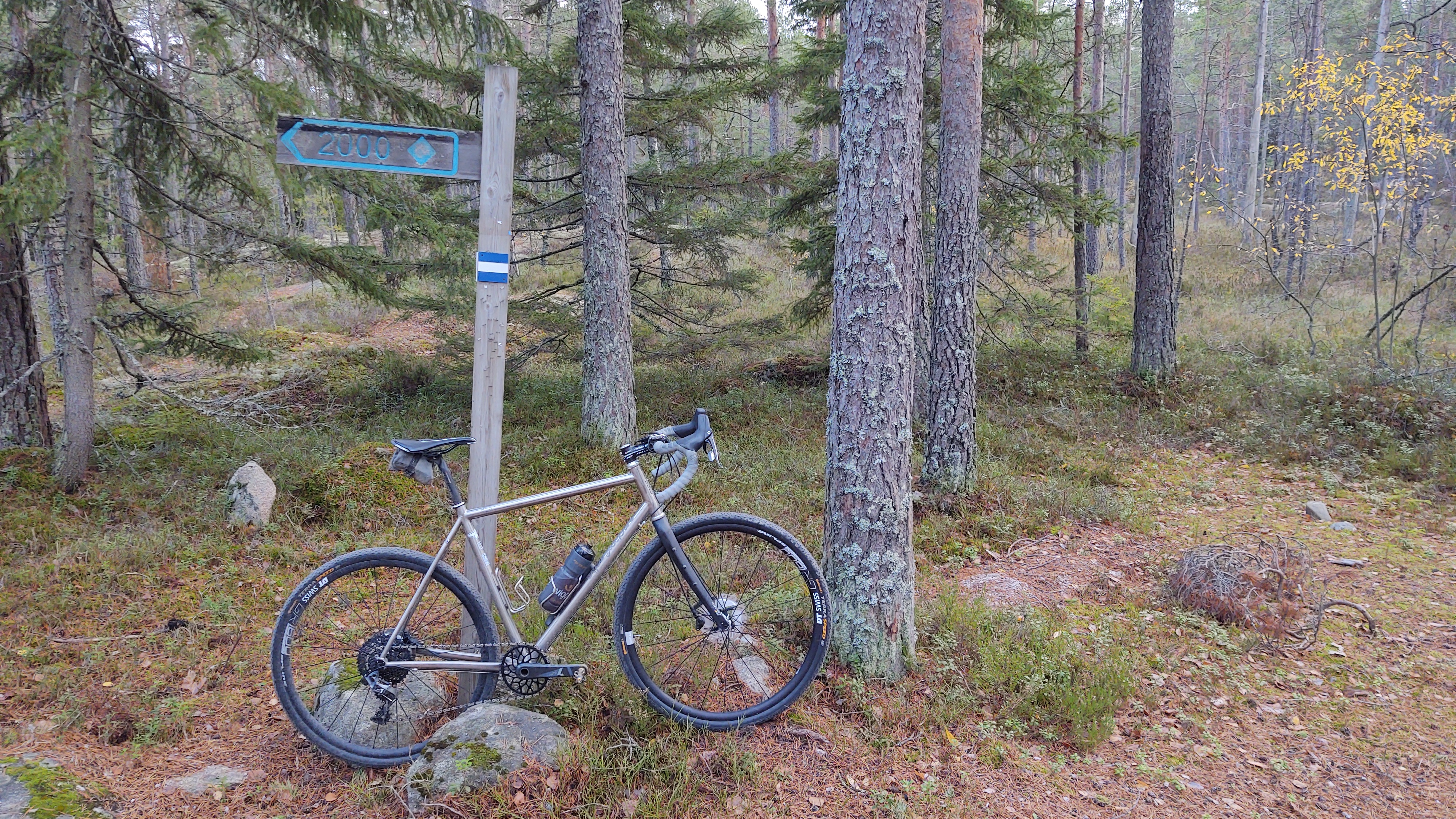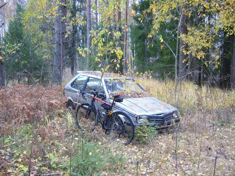 Taiteilu-eräilyseikkailulta kotiutunut melkein sivistyksen pariin eli mökille niin mökkimaasturi alle ja "gravel"-pyörähdys lähiromujen kautta. En tuota lähinpänä olevaa nyt kehdnnut noukkia kun koira haukkui niin saatte Tojota Koronan.